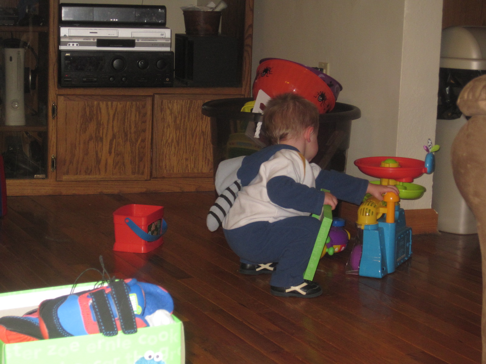 He was allowed 2 pieces of candy tonight- a dum dum (which he loves these so much he tries to eat them through the paper) and a reeses peanut butter cup. He really enjoyed them, but still prefers his lima beans :) Fortunately, in spite of all the fun going on, he was sound asleep by 8.